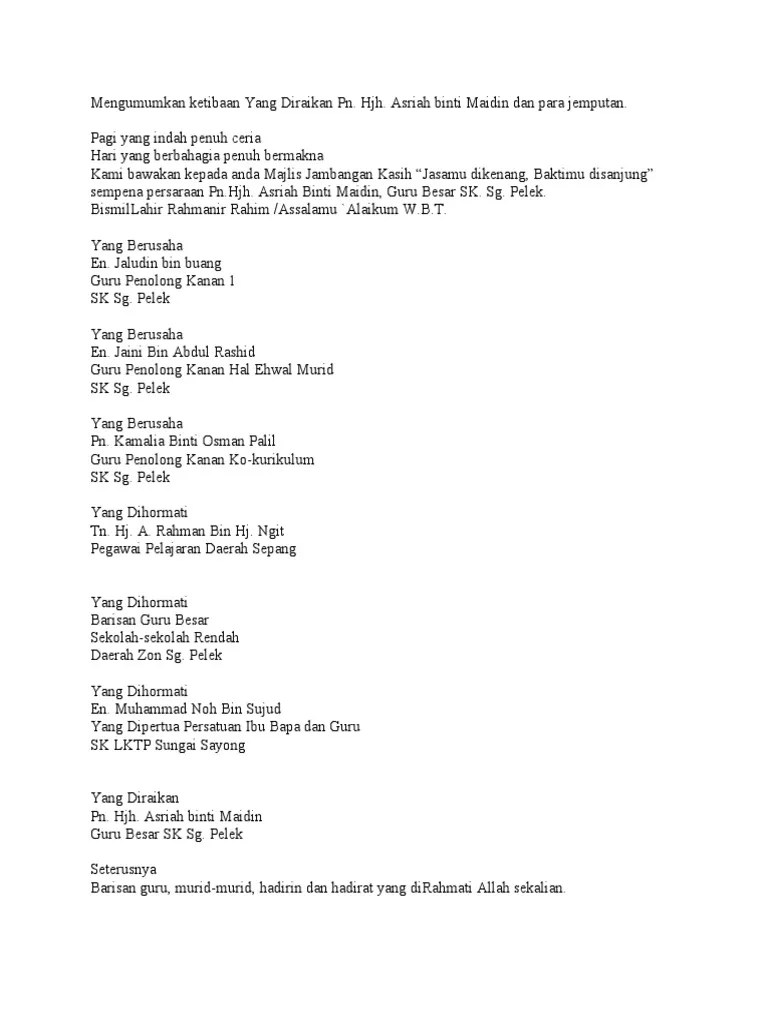 Teks ucapan majlis persaraan guru besar. Kami memberikan contoh pantun perpisahan ini agar kamu bisa mengirimkan nya kepada tema. Pasti ada jasa yang dicurah. Pesan jua si bujang resah. Telus kata buat anak dara.